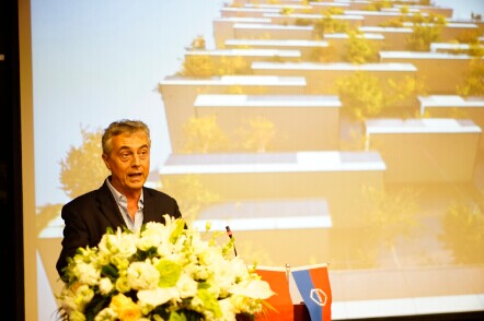 As to why “Vertical Forest” Project chose to have its first display in DOBE E-manor, Boeri thought Chinese cities were experiencing large scale urban sprawl; environmental pollution caused by urbanization and industrialization, such as smog, also happened in Europe; the creation of “Vertical Forest” was to solve the contradiction of high density and high pollution in cities, hoping China wouldn’t repeat the mistakes of Europe in the process of rapid development.