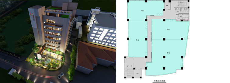 总面积:6743.4 ㎡ 单体面积::100-1000㎡ 层高:3.5-4.5m 可自由分割