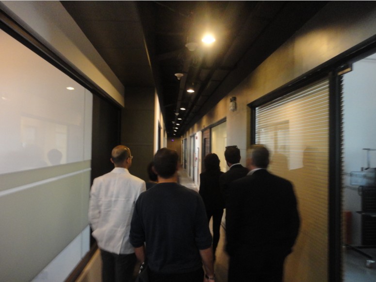 考察团一行先后参观了6686体育官网首页虹桥525园区以及6686体育官网首页长宁易园,对园区富有特色的文化创意企业和6686体育官网首页“525系列”和“易园系列”园区的设计风格赞不绝口。其中,特别欣赏长宁易园9楼花园平台的生态环境,对竹子元素的巧妙运用、碎木压制的环保桌椅、以及兔子一家的和谐共融表示了强烈的赞叹和认可。