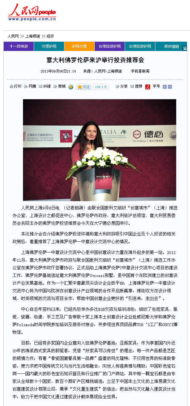 人民网:意大利佛罗伦萨来沪举行投资推荐会